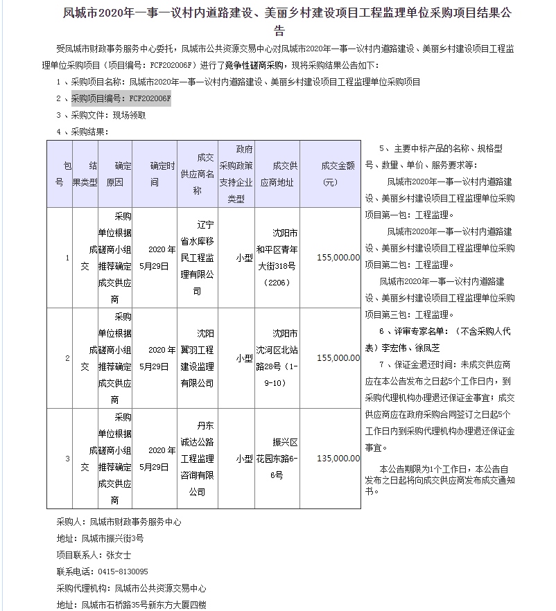 遼寧省水庫移民公司中標(biāo)鳳城市2020年一事一議村內(nèi)道路建設(shè)、美麗鄉(xiāng)村建設(shè)項(xiàng)目工程監(jiān)理...