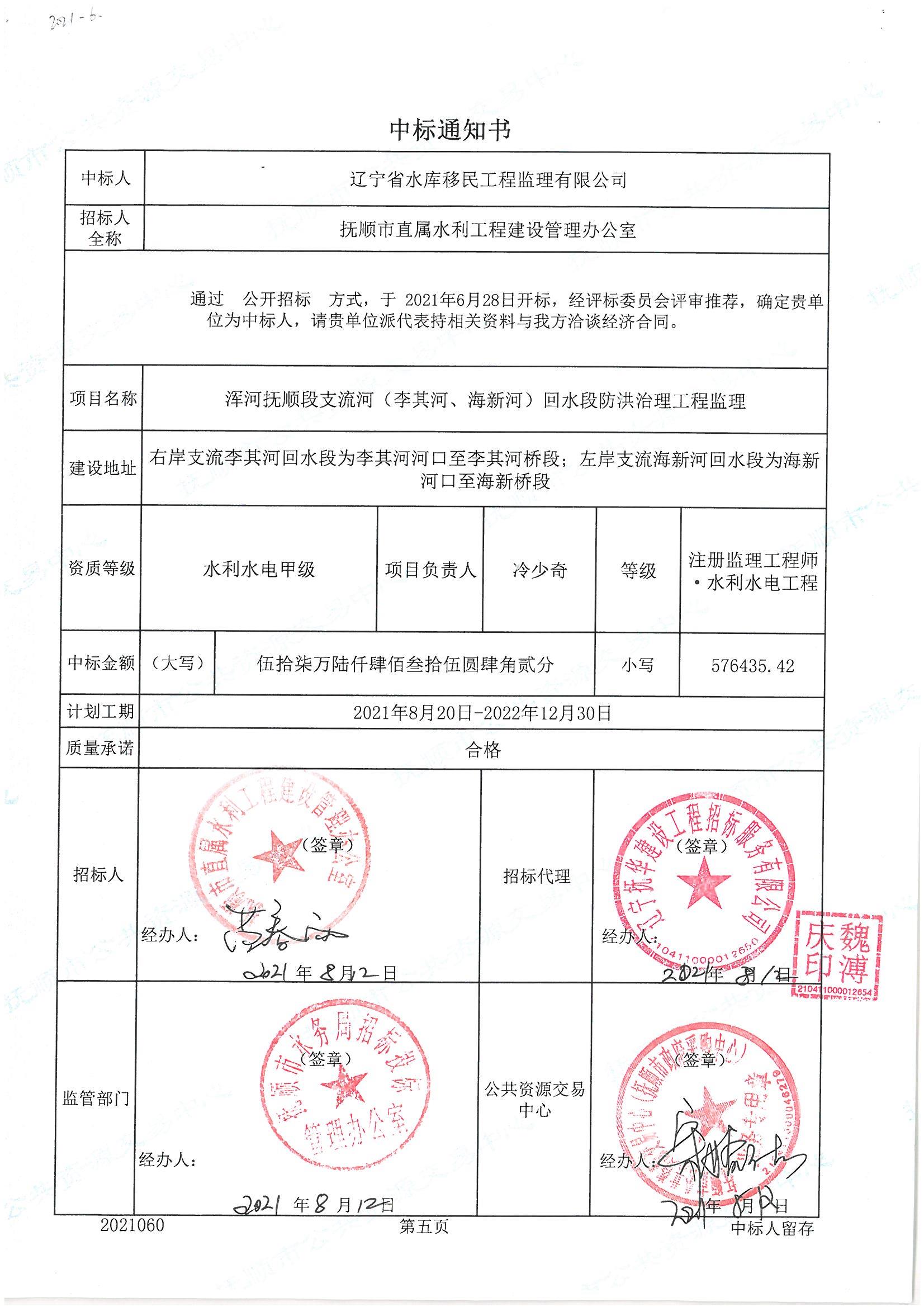 渾河撫順段支流河(李其河、海新河)回水段防洪治理工程監(jiān)理